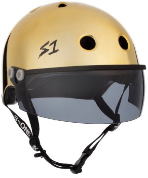 The S1 Lifer Visor Helmet Gold Mirror is certified to protect skateboarders, cyclists, roller skaters, roller derby players and non motorized scooters